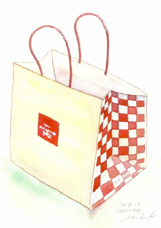 きょう描いたのは、イタリアンのデリで商品を入れてくれた紙バッグ。デザインがかわいかったので。