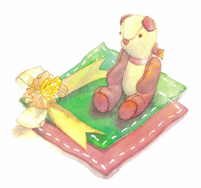 今日描いたのは、姉妹の、それぞれのハンドメイド作品。リボンのついた敷物は、次女が小学校の家庭科の授業で、波縫いの練習で作ってくれたもの。クマのマスコットは、長女がライフワークとして何十体と作っているもののうちの一つ。私のリクエストした色で作ってプレゼントしてくれたもの。私の宝物たち。