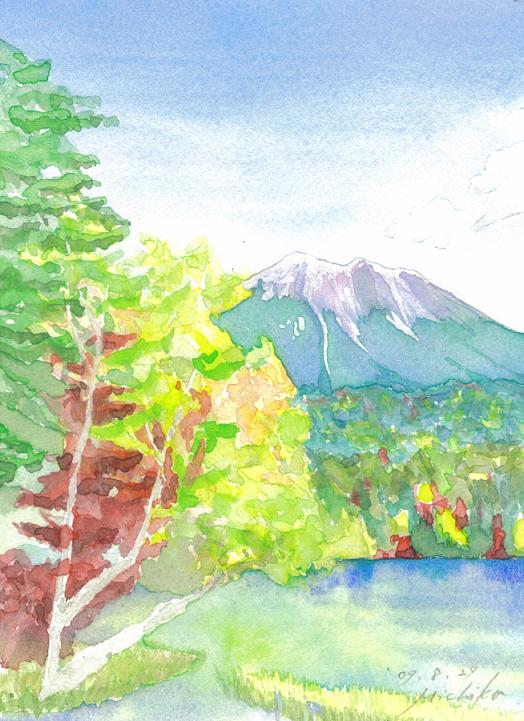 ということで、明日はあまり時間がないと思い、今日のうちに絵を描いておいた。体調のせいか、いまひとつの出来だ。次女が覗き込んで、「かあちゃんらしい絵だ」と言った。残念ながら、これはスケッチではなく、資料となる写真から起こした絵だ。「秋の絵を」という注文があったので。