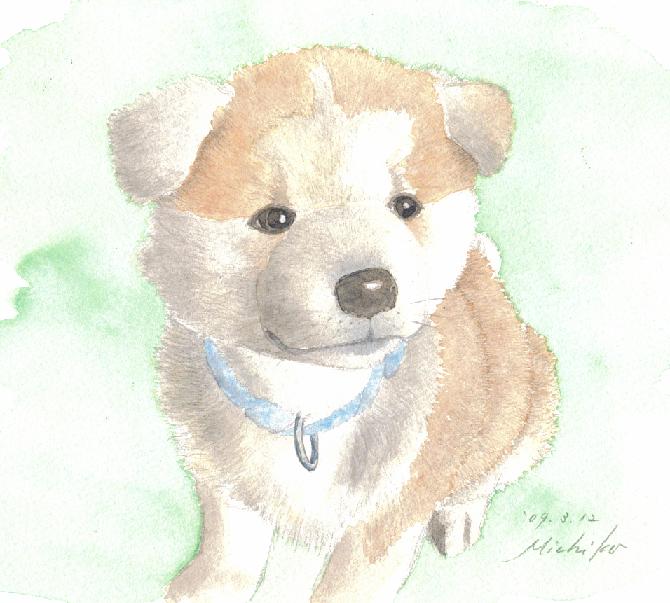 前回の、ミニチュアダックス「チェル」ちゃんの絵が、思いのほか喜んでいただけたので、調子に乗って、そのお隣の派遣仲間にも声をかけ、彼女の好みの「もこもこ系」のちっちゃな秋田わんこを描かせてもらった。きょう、原画を会社でお渡しする予定。彼女もまた、来週月曜日を最後に、今の職場を去ってしまう。春というのは、寂しいことがあっても耐えられるように、神様がたくさん花を咲かせてくれる季節にしてくれたのかも知れない。Kさん、Mさん、長い間、本当にありがとうございました。一緒に働けたこと、忘れません。