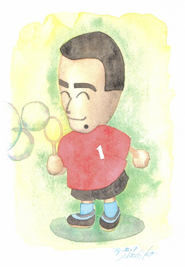 今日の絵は、次女が作った、彼女の父親の似顔。主人の顔を知っている人が見たら、きっと、「似てる」と言ってもらえるだろう。このシーンは特に、「どうぶつの森」というソフトの中なので、体が子供サイズになる。ただでさえ長い顔と、小さな体が非常におかしなバランスで、笑える。55歳のオッサンが、シャボン玉で遊んでいる・・・初めて見たとき、おかしくて、私は、涙を流しながら笑い転げたほどだ。思わずテレビ画面を携帯で激写。長女など、Wiiスポーツをやっている父親の動きがおもしろいといって、テレビ画面ではなく、父親本人に携帯を向けて、動画を撮っては、何度も見て笑っていた。