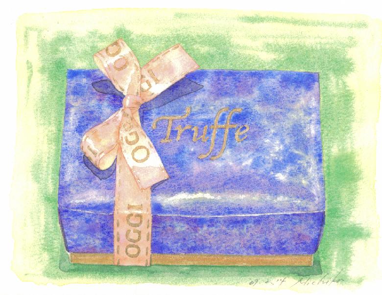 昨日は、バレンタインデーだった。今年は例年のようにオレンジピール・チョコと、新たに、アマンド・オ・ショコラを作った。絵は、夫に贈ったOggiのトリュフの箱。彼は、私や娘たちの手作りお菓子に、少々飽きているので。なんと贅沢な男!