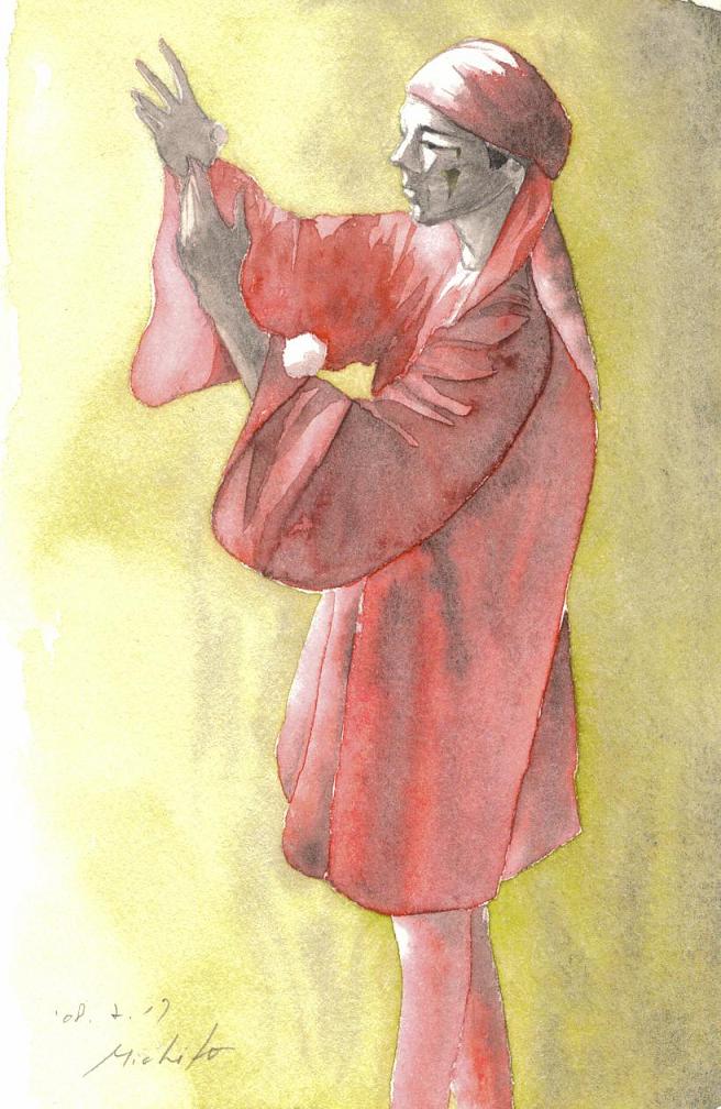 ふたつの展覧会を見終わってから、ゆっくり待ち合わせ場所に向かう途中、上野公園の中で、ひときわ人を集めている大道芸人がいた。紙麻呂さん、という方で、パントマイムを取り入れた手品などで、テレビにも時々出演する方らしい。素通りしようと思っていたのに、その雰囲気に吸い寄せられるように、長女も私も動けなくなり、結局最後まで見させてもらった。