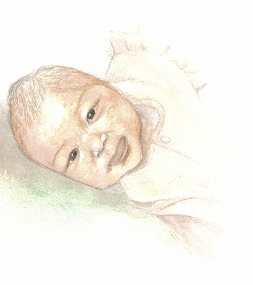 赤ちゃんの絵というのは、描いていてとても幸せな気分になるし、どういうわけか、どの子もかわいく描ける。似てるかどうかは、親の判断に任せるとして、私は、「赤ちゃんはかわいく描ければいい」と思っている。