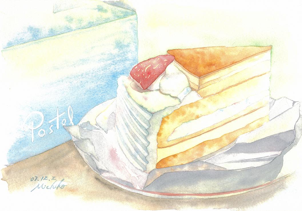 イラストは、お店から駅までの道の途中にある人気のプリン専門店「Pastel」のプリンケーキ。話題のスイーツには疎い私だが、このお店は偶然テレビ番組で知ったばかり。一緒に歩いていたAさんが買うのを見て、私も試しに買ってみた。