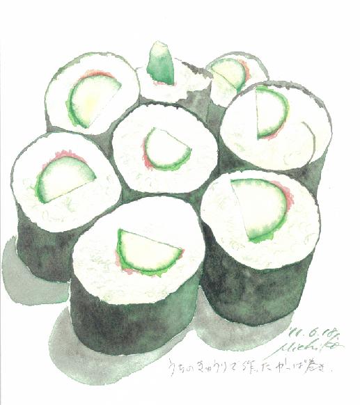 夜も手抜きで手巻き寿司です。ずっと不精していたので、夕方、義父の仏壇に焼香しないと。夜は、お世話になった絵の具や筆、パレット、水入れなどをキレイに手入れしたい。描き散らしたスケッチも整理して、ファイルしたい。