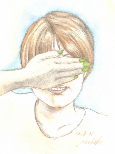 きょうの絵は、その、髪を切ってカラーリングしてもらったばかりの長女。「あご、ちょーヤバイんだけど」だって。まあでも、長い髪で隠すより、輪郭は出しちゃった方がすっきり見えるけどね。親バカ、かな。