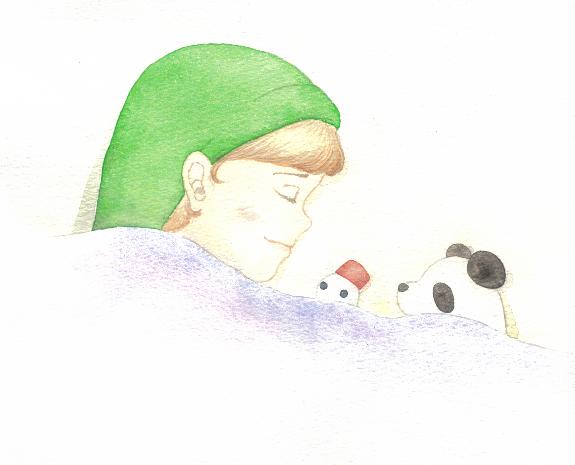 明日もほぼ半日美容院で忙しく、描き下ろしができないため、今回は、先月応募した絵本原画の扉ページをUPする。私の絵本には、必ずパンダが登場する。これも、二女の「むさし」がモデルだ。