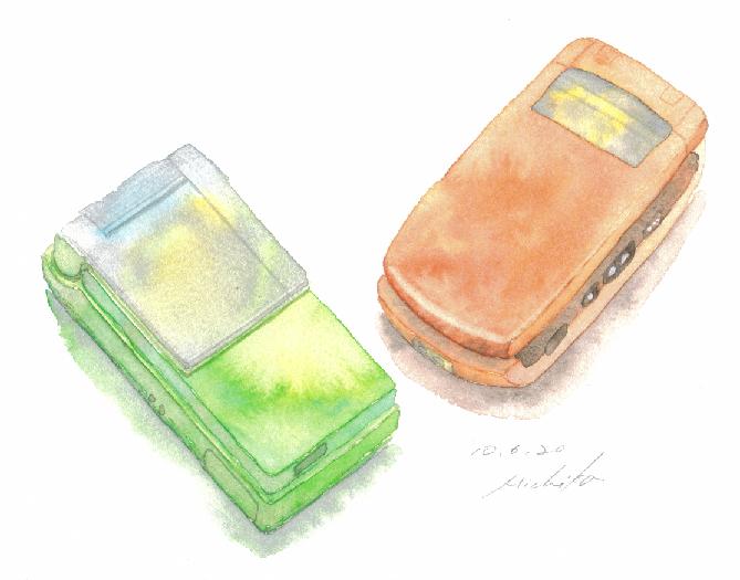 今回は、長女の歴代の携帯機種を描いてみた。彼女はポップな色が好きだ。大きめのキャンディーみたい。