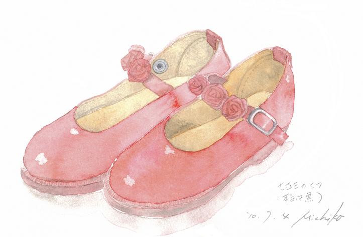 こういうかわいい「思い出の品」も、残念ながら当然もう履くことはできないし、エナメルなので、状態もあまりよくなくて、人に差し上げることもできない。なので、絵に描いて記録して、泣く泣く処分することにした。